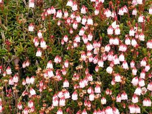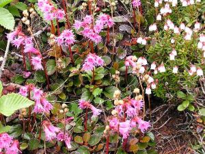 | ツガザクラ (ツツジ科、ツガザクラ属) 常緑矮性低木で、高さ5〜20cm |