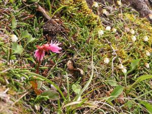 ツマトリソウ (サクラソウ科、ツマトリソウ属) 高山体のリンチに生え、高さ5〜25cm |