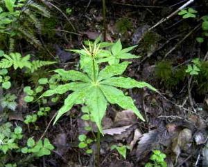 クルマバツクバネソウ (ユリ科、ツクバネソウ属) 林内に生える多年草、高さ20〜40cm |