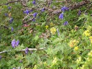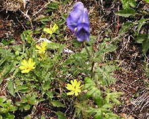 オオサワトリカブト (キンポウゲ科、トリカブト属) 高山帯の草地に生え、高さ15〜50cm |