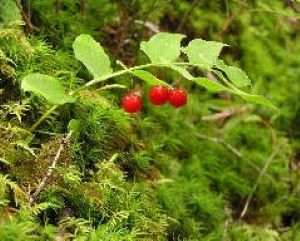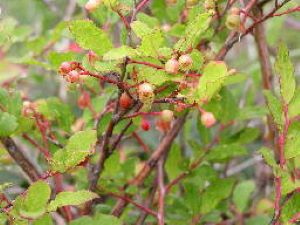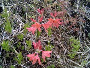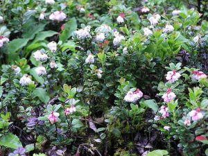 | コケモモ (ツツジ科、スノキ属) 常緑矮性低木で、高さ5〜20cm |