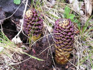 オニク (ハマウツボ科、ウツボ属) ミヤマハンノキの根に寄生する寄生植物 |