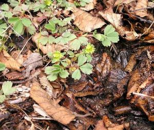 ツルシロガネソウ (キンポウゲ科シロガネソウ属) 山地の林内に生え、高さ10〜20cm |