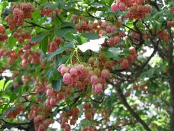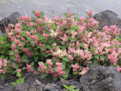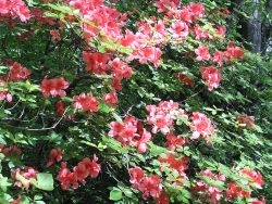 | 初夏にたくさんのピンクの花を咲かせます。見ると、いつもネパールで見たシャクナゲの高木を思い出します | 初夏に朱赤色の花をたくさん咲かせて、遠くからもよく目立ちます。アカマツの林で見かけます。 | 近所から頂いた木ですが、今では大きくなって、鐘状の小さな花をたくさんつけています。 | イワタバコ科の花で、隣家のブロック塀に付着して咲きます。富士川町の渓谷で群落を見たことがあります |