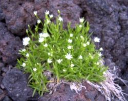 | 五合目より上の火山荒原の砂礫地に生えています。花が見られるのは初夏から夏です。白い花がよく引き立ちます | 五合目お中道の砂礫地に多く咲いています。花は淡紅紫色で、とてもきれいです。フジイタドリとも言われます | 五合目の上部の岩陰や砂礫地に生えています。こんな可愛い花が、よくまあ五合目以上に咲いているとは驚きです | 五合目に向かう滝沢林道(舗装道)を歩いていて見つけました。貴重な種で、とても美しく。感動しました |