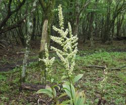 | 笛吹市の滝戸山を登っているときに見つけました。ユリ科の植物で、山梨ではほとんど見られない貴重な植物とのことでした | 三ツ峠登山口の神社で見つけました。花は5〜6月ごろに咲きます・代わった植物ですね |