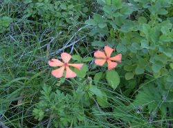 忍野二十曲がり峠から石割山へ登っているときに見つけました。花は夏から初秋に咲きます。シュ赤色の花がとてもよく目立ちます | 山中湖村の高まる美溶岩地の林の中で群落を見つけました。とても美味だと言われていますが、私には毒々しく感じられます |