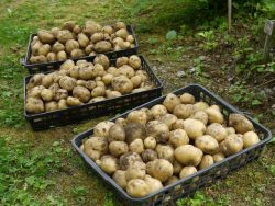 この収穫したジャガイモを見てください。食べきれないので、あちこちに頒布しました | 昔はサトイモも栽培しました。よく育ってくれました |