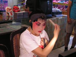 | ポーターのチベット族のお母さんの家を訪れ、調理する様子を見学しました | 四姑娘山の山頂は霧で覆われ、あたりは何も見えませんでしたが、現地リーダーと日本人ツアーガイドと一緒に登頂記念写真をパチリ | 四川省成都で川劇を鑑賞しましたが、開演前に女優がメイクアップするところを見学させてくれました |