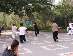 | 朝成都の街を散策していたところ、太極拳をする人々に出会いました。人々はこうやって毎日朝に集まるようです |