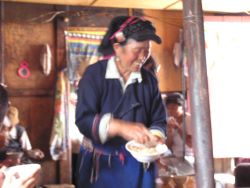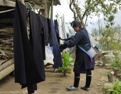 | 山岳民族の村を歩いていた時に出会いました。藍染をしています。藍色の服が彼女らの正装?のようです |