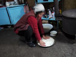 ”ユルタ”という遊牧民のテントに泊まりましたが、そこで女性が料理してくれました。遊牧民のテントに泊まるのは初めての体験でした |