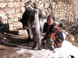 | 乳絞りをする女性 2003.12.30 | シェルパ族の親子 2003.12.30 | シェルパのサーダ 2003.12.31 | ||