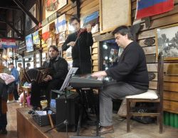 マサイ族部落の寺子屋のような学校も訪れ、子供たちの様子を見学しました。とてもかわいいですね。でもみんな本当に勉強していたのかな? | パタゴニア最南端のウシュアイアで、”世界の果て号”という蒸気機関車が運転されていますが、その駅舎で演奏していたバンドマンです |
