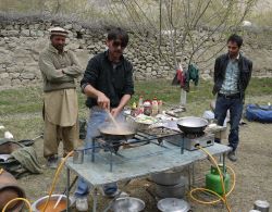 | フンザに向かう途中の道端?でコックが旅行者のための食事を作ってくれました |