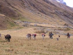 | 2009年8月、ペルーアンデス山脈をトレッキングしました。超有名なマチュピチュと違って、リマから赤道に向かって南下します。山脈を超えると、もうアマゾンの源流地域になるそうです。我々がトレッキングした地域は2かところで、”ワスカラン山群”と”ワイワッシュ山群”で、後者では4,000mの草原を4泊ここで出会った人々を紹介します。5日(テント泊)で踏破しました・ |