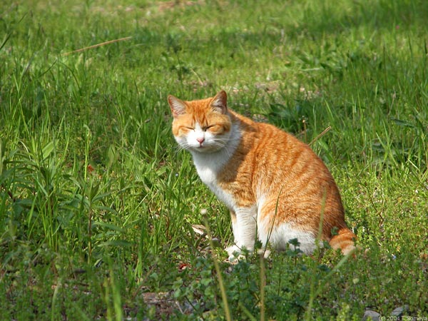 春たけなわの草原で出会ったタマ。ご機嫌上々の表情でした。