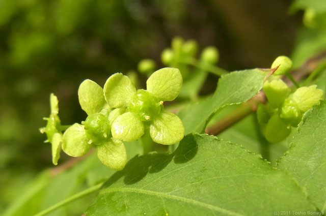葉っぱと見紛う程地味な色。木の花の姿は数々あれど、これだけ控え目なのも珍しい。