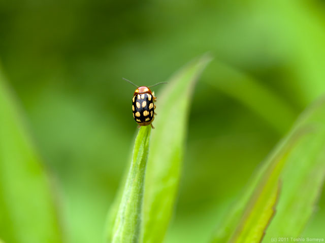 名前はキボシツツハムシ。数あるハムシの中でも視覚的アピール度はかなり高レベル。