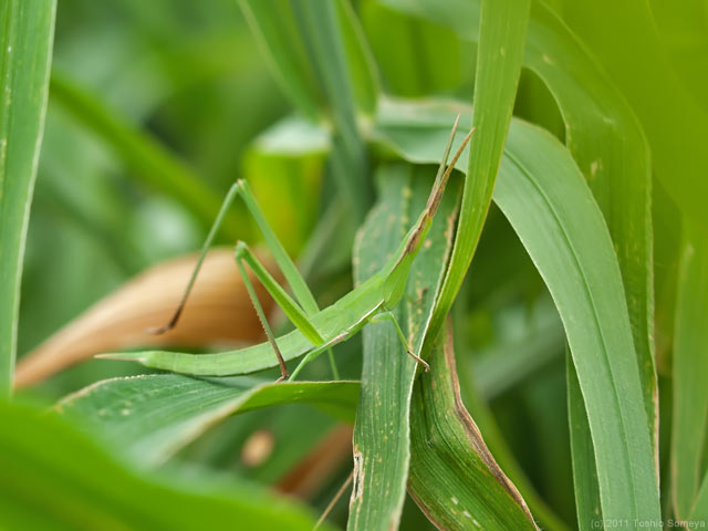 こちらは緑色系。色だけでなく、しなった身体のラインも草の葉にそっくりでした。