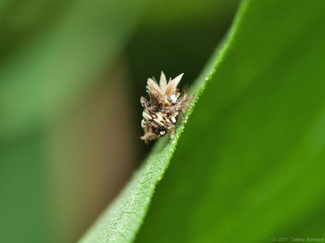葉っぱの上のゴミに何故カメラを向けるのか?と言う感じですが、これも昆虫。