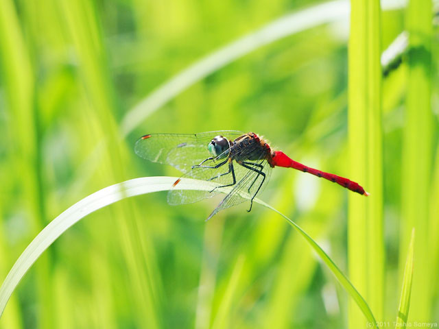 マイコアカネのオス。このトンボの場合は前面に回り込まないと特徴が判りません。