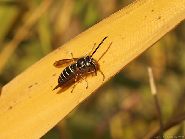 クロスズメバチも全身花粉まぶし状態になって吸蜜に夢中でした。 |