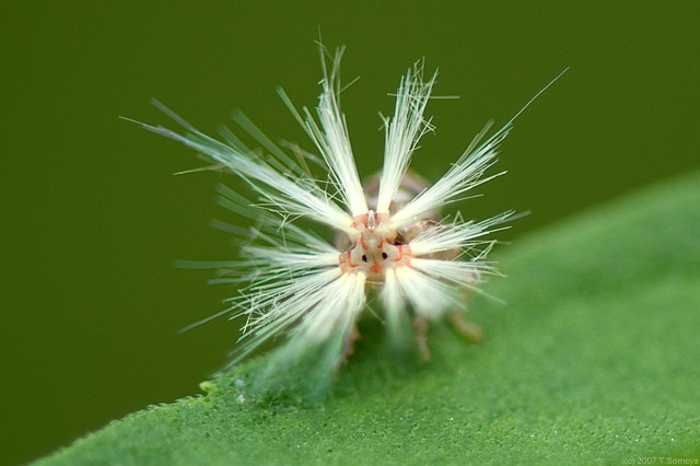 | 成虫を見かける時期になりましたが、まだ近くで幼虫が続々誕生中でした。 これはノーマルな撮影アングル。くるっと方向転換したら・・・こうだった↓ |