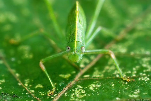 とてもおとなしい昆虫だけど、セスジツユムシの眼力もかなりのものです。