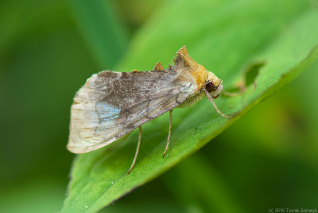 葉っぱの上で固まっていたこれは体形的に見てシャチホコガの一種でしょうか。