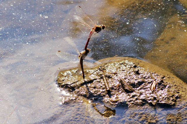 と言う訳で、水面から突き出た泥面にお尻を突き刺す形での産卵開始です。
