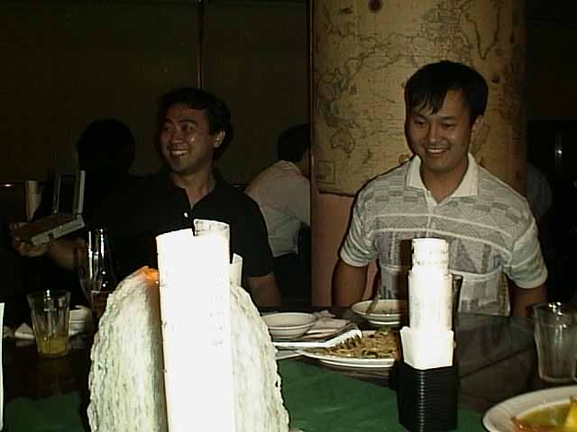 金谷勉くん、敬子さんがちょっと遅れて到着。乾杯はフライングしてしまいました。