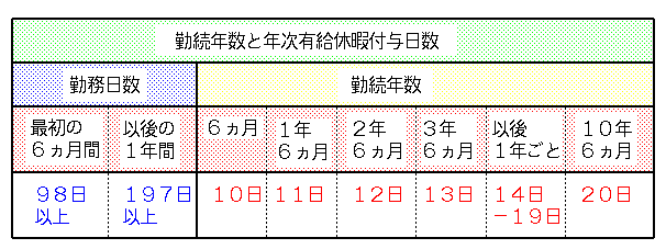 1 派遣スタッフが6ヵ月を超えて引き続き雇用される場合は、所定の年次有給休暇を与える。年次有給休暇の日数は別表の通りとする。