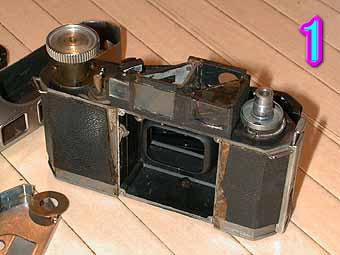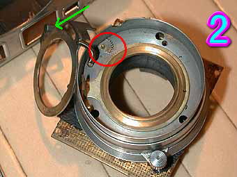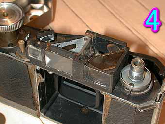 今回は、2台のアイレスの形態の変化に付いて見てみたいと思います。U型とUA型は兄弟機にあたるカメラです。色濃くT型のにおいの残るのがU型でV型に繋がる形態をしているのがUA型です。アイレスとしてはこの2台が一回目ターンニングポイントであったように思われます。共通部品も多くあり、改良点もありますのでここから説明していきたいと思います。 写真1はトップカバーを外した状態での比較です。両機の構造はほぼ同じになっていますが巻き上げノブの下面の内部構造に少しの変化が見られます。非常に構造的に見てもシンプルで無駄の無い設計になっています。 写真2は、大きな改良点であったシャッターボタンの形態です。U型はT型同様の大型フロントシャッターボタンを持ち普通シャッターボタンの付く位置にはレリーズ穴が開いています。UA型は普通のカメラの様な位置にシャッターボタンが付いています。U型では鉄棒によるシャッターボタンへのリンクになっています。緑矢印部分がレリーズ穴にリンクをしています。赤矢印シャッターに向かうリンクになります。2A型では、この部分が赤矢印のようにギアに替わっています。使っていくうちにギアのかみ合わせがずれてしまいシャッターボタンが押せなくなることがあります。緑矢印の下にあるのがシャッターへのリンクになります。ここも経年劣化によって変形をしやすい部品になります。 写真3は、レンズボード裏面を見たところです。裏面はU型は黒色処理されていますがUA型はまったく処理されていないことがわかります。ヘリコイド、距離計連動部に関しては同様な構造をしています。赤枠の部分はシャッターボタンからのリンクを裏面からみたところです。UAはギアに替わったのでここは改良されています。 写真4は、ファインダーブロックの構造を見たところです。ここはやはり当時の売りであったブライトフレームファインダーであったため無理な改良が加えられていなくほぼ同様な構造になっています。ただ部品の質に関しては、U型の方が良くしっかりと作られているように私には思えました。 写真5は、2台とも共通な部品が使われている部分です。左は裏面のフィルム巻き上げのギア群です。非常にしっかりとしたギアが使われています。裏面に穴が開いていますがここは右面の写真の連動距離計の為の部品を取り付ける為のドライバーを通す穴です。ここの部分の穴をふさぐのに2眼レフで使われたと思われる余り皮が使われていました。(2眼レフのフィルム固定ようのノブに付いている丸の形をした皮)。右の写真はヘリコイドからファインダーへのリンクになります。中央の板にいつもファインダーからテンションがかけられておりヘリコイド部の動きに対して距離像が動くようになっています。 最後にアイレスのカメラは非常に美しく、精度的にみても良く出来ているカメラであると思います。メッキ処理も非常にきれいで磨けば磨くほど美しさを増すように思えます。コラールレンズの柔らかい描写も魅力的です。あなたもアイレスのカメラを一台いかがでしょうか? |