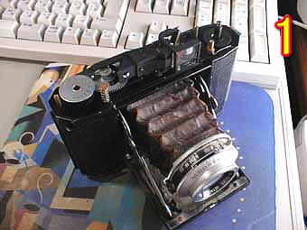 今回は、マミヤの名機である。マミヤ6の分解です。自動巻き止め装置のない6Kですが。蛇腹の補修に関しては、HAMAの遮光テープを使用しています。若干固いのですが。後、製本用テープなどもお勧めです。写真1はトップカバーを外したところです。部品数も少なく、非常に壊れづらいと思われます。写真2は、距離計の構造です。このカメラの特徴であるバックフォーカスを採用しているので距離計の精度、構造も非常に良いカメラです。緑で囲われたバーの前後運動で距離計を動かしています。距離表示プレートのしたにカムがあるので緑のバーが動くわけです。 | ![]() |