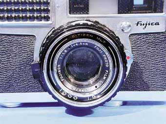 レンズ: フジノン45mm F1.9(4群6枚) シャッター: シチズンMLT(B、1〜1/1000),セルフタイマー内蔵 シンクロ: MX接点 ファインダー: 採光式ブライトフレーム 焦点調節: ノブ式直進繰り出し、距離計連動 露光調節: セレン光電池使用連動式 フィルム送り: 底部レバー巻き上げ、クランク巻き戻し フィルター: 35、5mmネジ込み 寸法: 138×95×87mm 重量: 770g 発売: 1959年(昭和34)12月発売 価格: 25500円 |