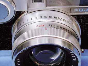レンズ: フジノン45mm F1、8(4群6枚) シャッター: シチズンMLT(B、1〜1/1000),セルフタイマー内蔵 シンクロ: MX接点 ファインダー: 採光式ブライトフレーム 焦点調節: ノブ式直進繰り出し、距離計連動 露光調節: CdS使用連動式 フィルム送り: レバー巻き上げ、クランク巻き戻し フィルター: 52mmねじ込み 寸法: 148×90×68mm 重量: 792g 発売: 1964(昭和39)年9月発売 価格: 23800円 |