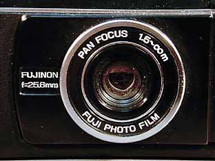 レンズ: フジノン25、6mm F9、5(3群3枚) シャッター: メカニカル(1/80,1/320) シンクロ: X接点 ホットシューつき ファインダー: 透視式 焦点調節: 固定 露光調節: なし フィルム送り: 背面ノブ巻き上げ フィルター: 寸法: 103×51、5×40mm 重量: 120g 発売: 1977(昭和52)年5月 価格: 9500円 |