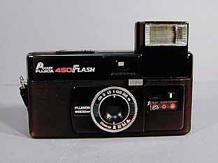 | ポケットフジカ250を進化させたのがこのポケットフジカ450である。距離調節、絞り調節も出来るようになって撮影の範囲が広がった。このポケットフジカの縦形スタイルは非常にホールディングもよくこのころ問題になっていた110カメラのブレ防止に役立っている。中古市場では、ジャンク箱にいることが多い。 | ||