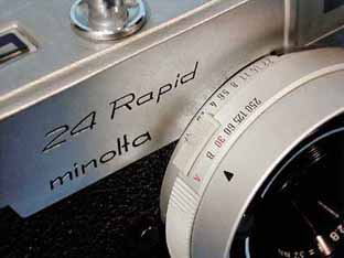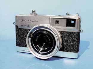 | ミノルタ唯一のラピッドカメラである。各メーカー少量のラピッドカメラを発売していたが、人気の低さにすぐに撤退してしまった。このカメラの126サイズ版も名前を変えて発売されていた。なぜかCdsが斜めについている。始めは、曲がっているのかと思い分解してみたのだが、構造的に斜めにつくようになっていた。後に雑誌広告をみたら確かに斜めについていた。中古市場では、人気の無さかほとんど見ることがない。実用性も低くコレクター向けのカメラである。 | ||