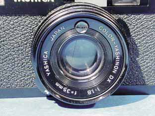 レンズを見る。 ヤシノン35mm f1、8で広角レンズである。 |