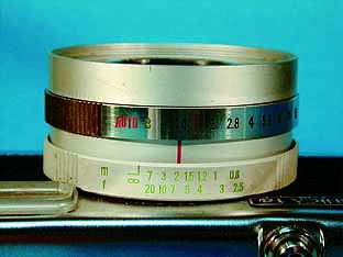 レンズ回りを見る。 距離表示もグリーンである。 |