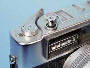 巻き上げ部から見る。 くわえ込み式EEの為、シャッターボタンが飛び出している |