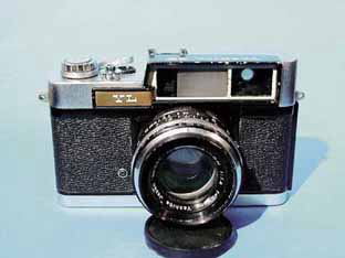 | 独特のスタイルを持つカメラである。ファインダーの上の黒カバーは、非常にかっこよく思える。ライトバリュー式の新型シャッターコパルSVLを採用したカメラである。 ルーペ入りフィルムカウンターや底部、大型巻き戻しクランクなどのちのちのヤシカのカメラの基本になるスタイルになっている。 内部構造は、やすり等で削った後などかなり雑なつくりが見られた。このカメラのトップカバーを開けるのにかなりの苦労をした記憶がある。 |
