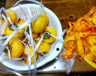 せっせと渋柿の皮を剥いて紐に縛って吊るせるように出来上がる。