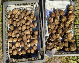 秋じゃが芋と里芋は植え付けが一か月以上遅れてしまった事もあってどちらも収穫は木箱二つくらいだった。