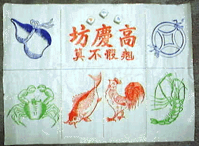 エビカニサカナ、フーヘイホウ、大公無私、マカオダイスなどと呼ばれる賭博ゲーム。 エビ、蟹、魚、鶏、銭等6種類の絵が描かれたシートを広げ、そろぞれの絵が6面に描かれた3個のダイスを振る。賭け者は絵に対して賭け金を置き、その絵の目が出ると配当をもらえる。