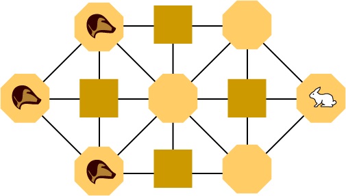 駒の構成がアンバランスで、目的も異なる2人用のゲーム。 交互に一つずつ駒を動かす。 盤の形状は数種類見つかっている。 中世・近世のヨーロッパで遊ばれた。 狩人(または猟犬)のプレイヤーは兎の駒を追い詰めて動けなくすることを目的とし、 兎のプレイヤーは狩人の包囲を突破して逃げることを目的とする。 兎の駒は縦横斜め自由に動けるが、狩人は前か真横にしか動けず、後ろや斜めに戻ることはできない。