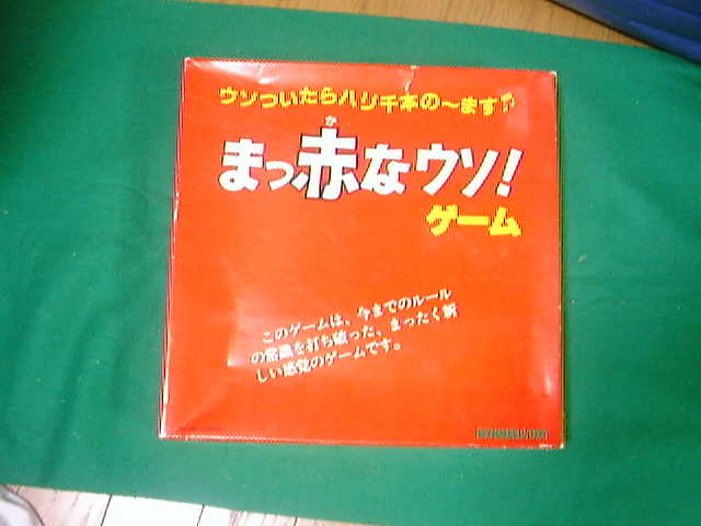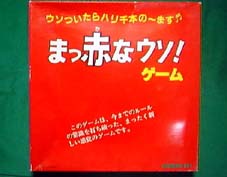 | 概要 | サイコロを振って進むレースゲーム。駒が上に穴があいた筒になっていて、 その中にサイコロが入っており、各自自分の番にはそれを振り出た目を宣言して進む。 嘘をついても良いが、誰かにチャレンジされると目を見せなければならない。 失敗すると戻らなければならない。 イギリスのワディントン社のフィバー(Fibber)というゲームの日本語版。 |