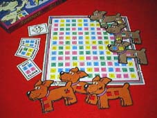 指名手配の4人組の犯人を誰よりも早く見つけることを競うゲーム。 ランダムに配置されている4つの色から、配られている4つの穴が空いた板を置き、 その窓にカードで指定された4つの色が出るとそのカードを取ることができる仕組み。 |